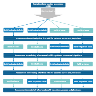 We zullen 82 patiënten includeren in deze twee-armige, gerandomiseerde cross-overstudie. Elke patiënt zal twee pomp bijvullingen thuis en twee bijvullingen in het ziekenhuis ontvangen.